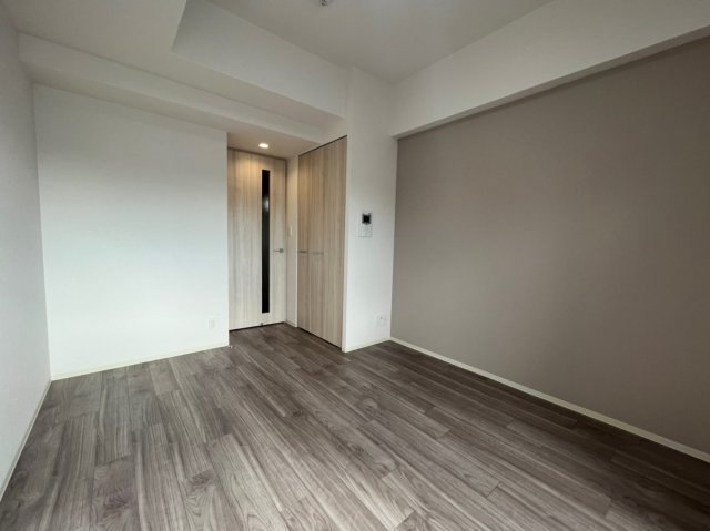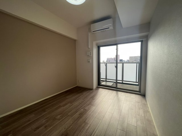 洋室は6.8帖のフローリング仕様。流行りを取り入れたグレー基調がおしゃれ。ベッドやデスクを配置しても余裕があり、インテリアを楽しみたい方にも向いています。エアコン付きで、季節を問わず快適に過ごせます。