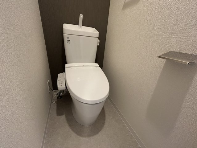 浴室乾燥機付きバスルーム、独立洗面台、温水洗浄便座と、水回り設備は非常に充実。新築物件ならではの清潔感と快適性をしっかり感じていただけます。