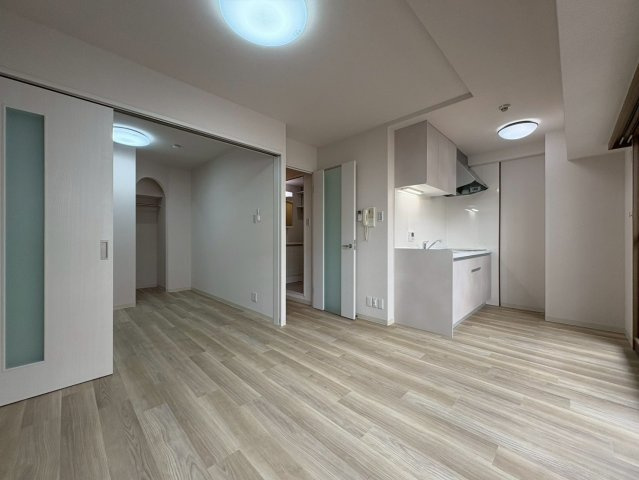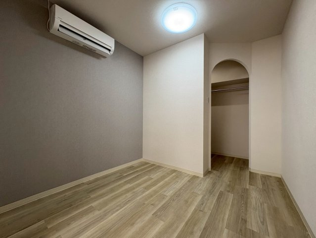 南向きのお部屋で、LDKは日中しっかりと採光が取れます。洋室はウォークインクローゼットのアーチ状の入り口がかわいらしい印象です。全居室フローリング仕様で、家具の配置もしやすく、すっきりとした印象。エアコン付きで季節を問わず快適に過ごせます。