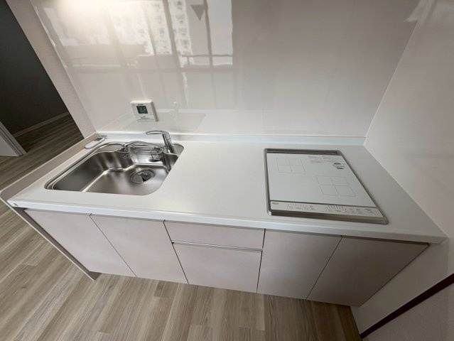 IHコンロ2口のシステムキッチンを採用。オール電化仕様で、火を使わず安心感があり、お手入れもしやすいのが特徴です。