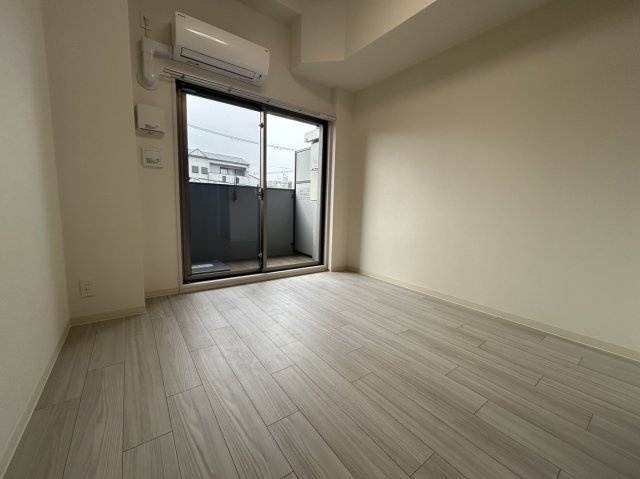 洋室はフローリング仕様で、ベッドやデスクを置いても圧迫感が出にくい印象です。またエアコンや照明、人感照明センサーも備わっており、入居後すぐに快適な生活をスタートできます。