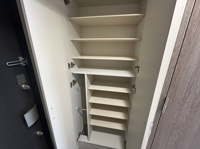 クローゼットやシューズボックスが備わっており、荷物が多い方でも整理しやすくなっています。さらにオートロックや防犯カメラ、宅配BOX、エレベーターなど共用設備も充実しており、安心感のあるマンションです。