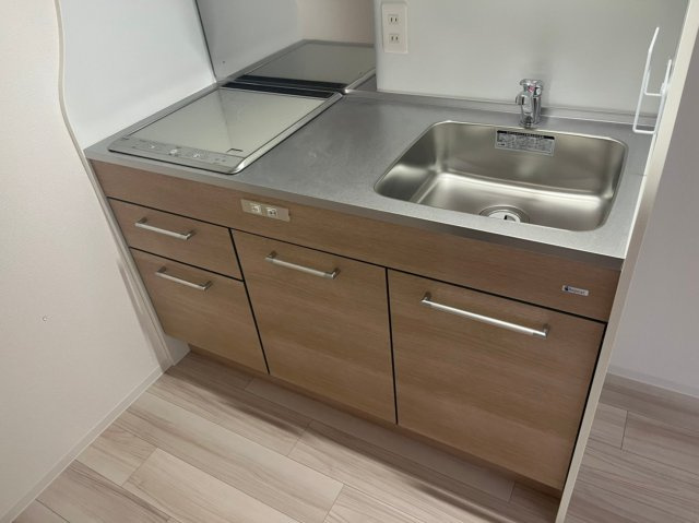 オール電化仕様で、IH2口コンロ付きのシステムキッチンを採用しています。火を使わないため安全性が高く、掃除もしやすい点が魅力です。さらにネット使用料不要のため、在宅時間が長い方にも嬉しい条件です。