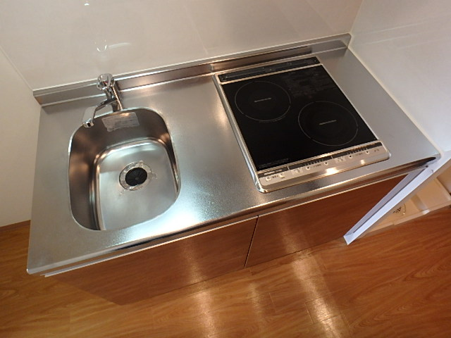 システムキッチンにはIH2口コンロを採用。火を使わないため安全性が高く、お手入れも簡単です。さらにオール電化仕様なので、光熱費の管理もしやすく、毎日の暮らしに安心感があります。